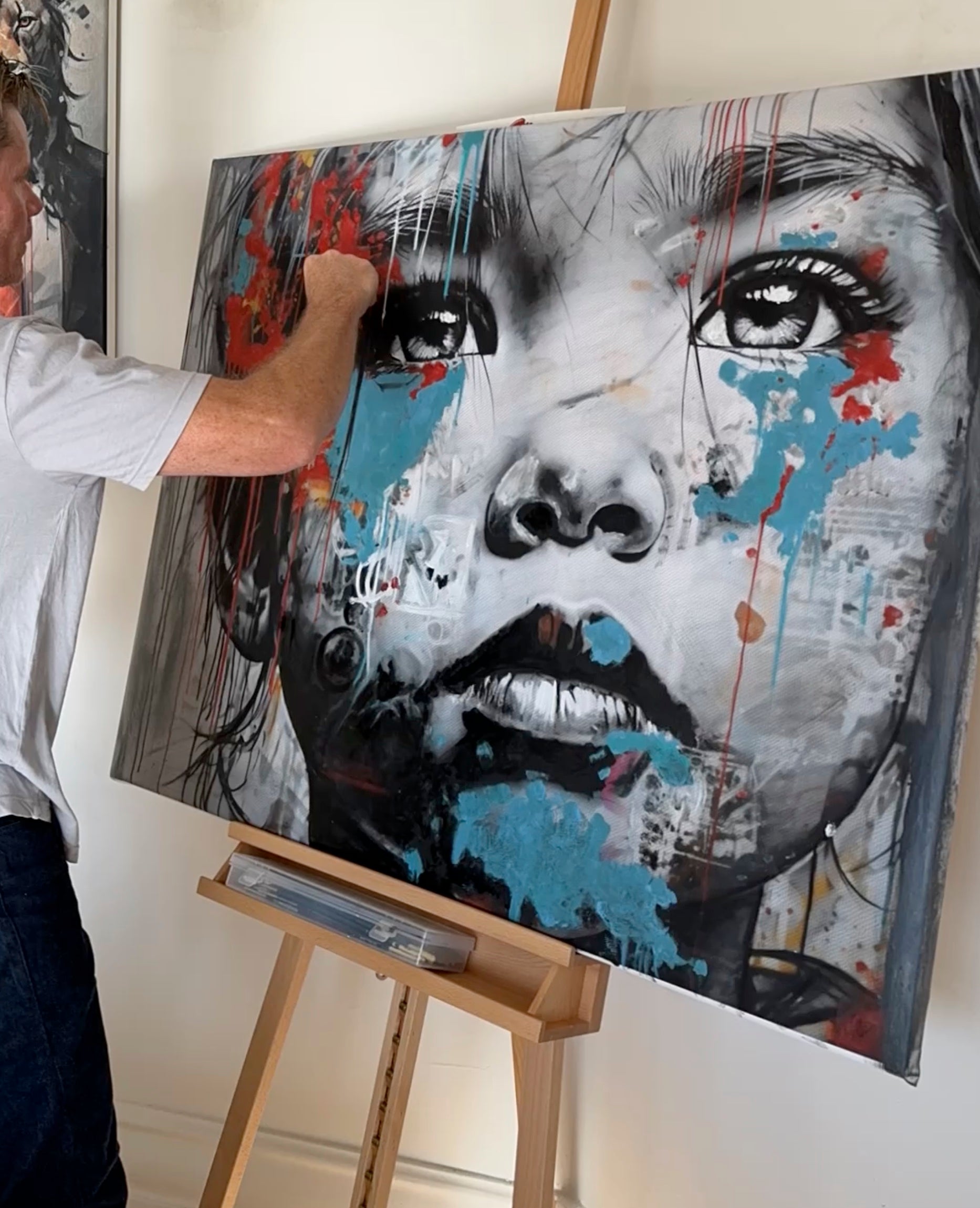 A portrait of refusal — not of others, but of the instinct to disappear. Layers of paint and distressed textures move across the face like weather, mapping the moment someone claims their own voice after years of quiet compliance. The upward gaze is steady and vulnerable, naming truth without hostility. “Defiance” reflects the turning point where a person chooses authenticity over approval, and presence over silence.