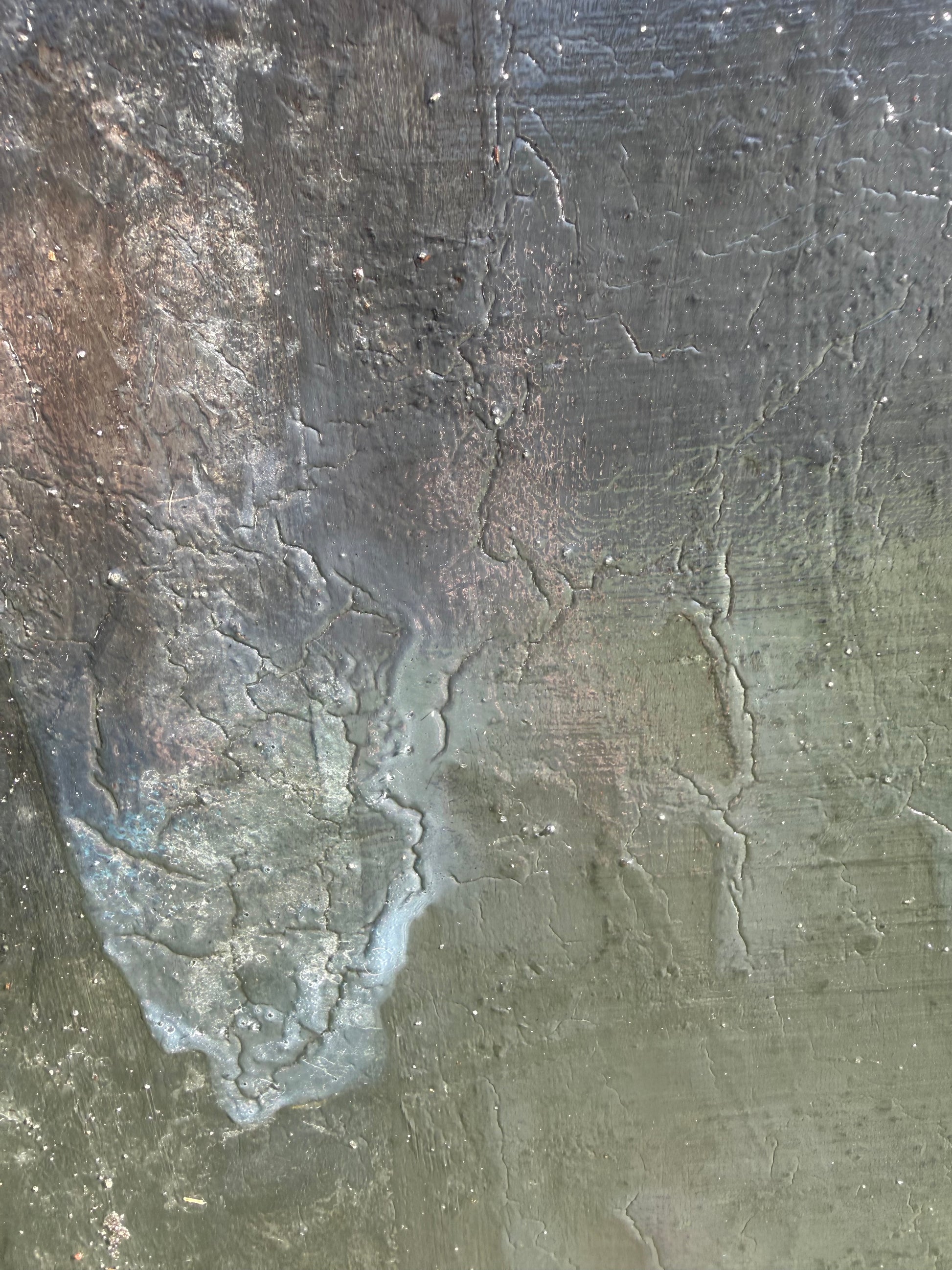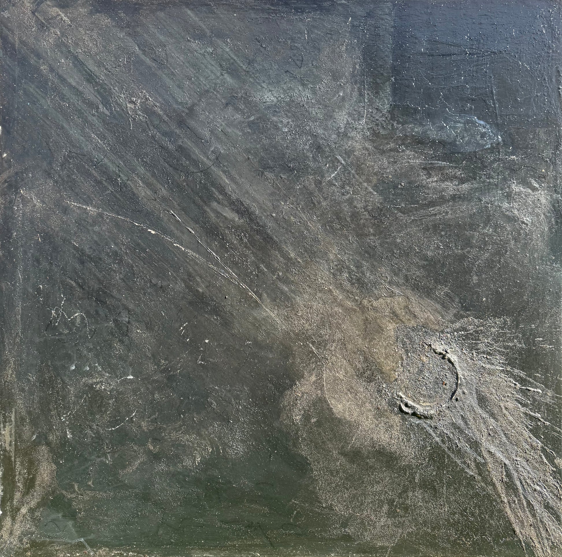 The painting carries evidence of pressure rather than gesture. Abrasion, fracture, and residue sit quietly across the surface, suggesting that meaning has already been worked through and left behind. Nothing here asks to be interpreted. Nothing announces itself as symbol.